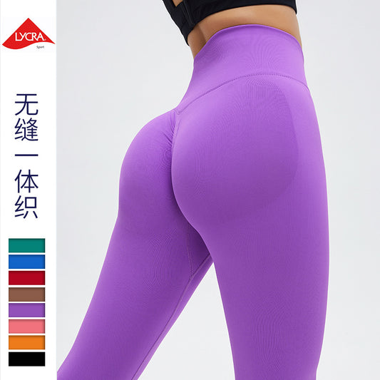 Summer Lycra peach pants new workout pants women's high waist hip lift sports trousers tight nude feel yoga pants outer wear