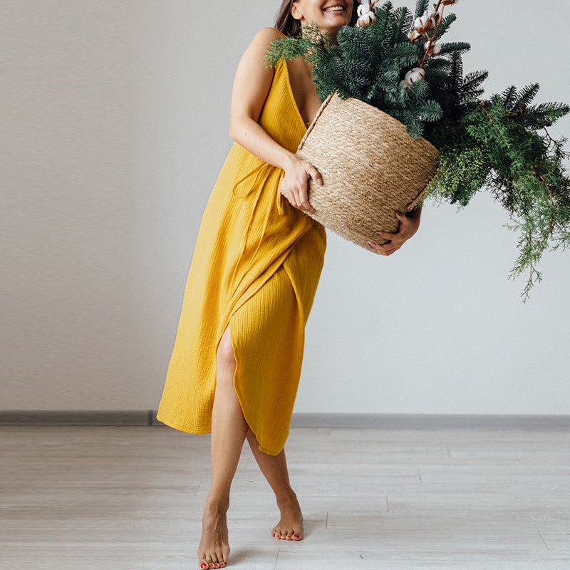 French Front Tie Strap Dress Women's Backless Slit Long Dress |tops,women's clothing