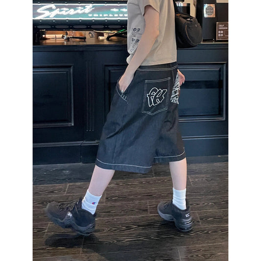 American street vibe vintage embroidered jeans for women 2025 spring and summer New loose wide leg straight cropped pants