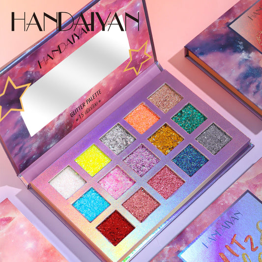Cross-border eye shadow plate 15 colors handaiyan genuine goods European and American big sequins flash nightclub shiny eye shadow plate